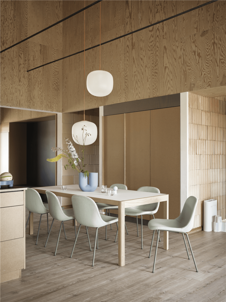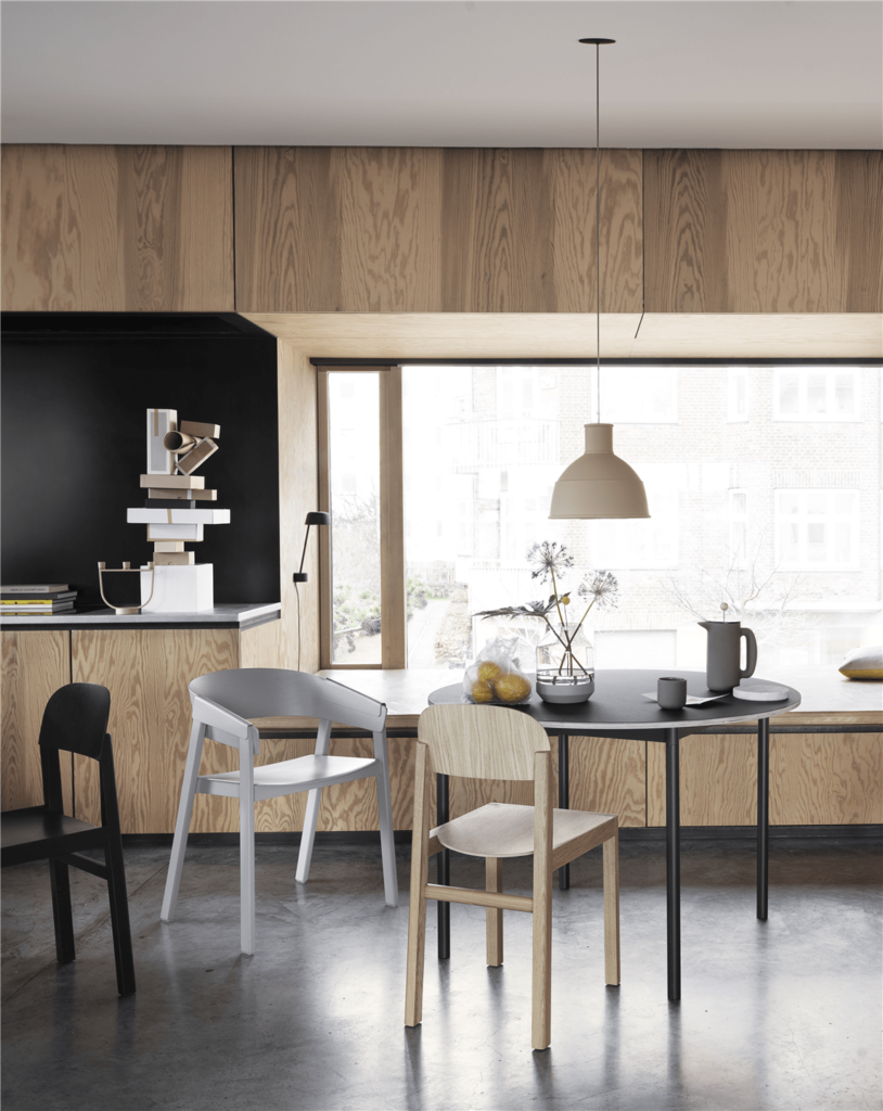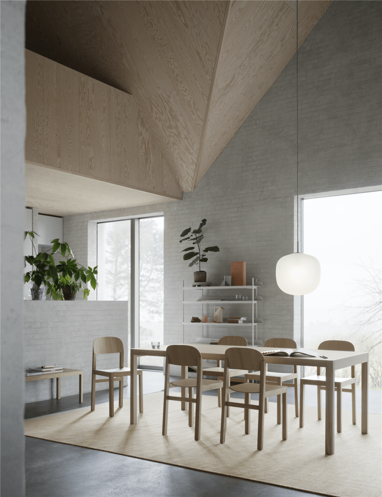 Workshop es diseñada para la marca Muuto complementando así a la mesa de la misma colección que forman un match perfecto, con un estilo muy natural pero al mismo tiempo lleno de distinción.
