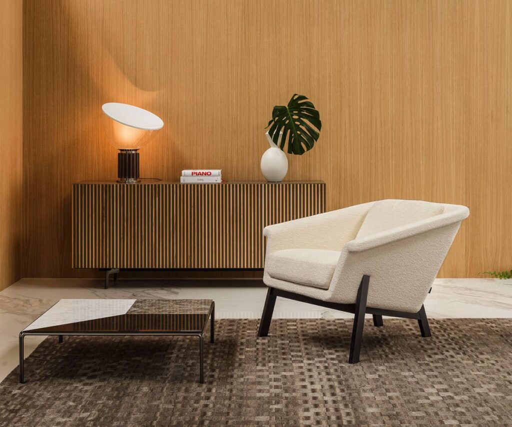 Pieza diseñada por C.R. & S. RIVA1920 es una silla elegante y envolvente con patas de hierro con acabado perfecto. Su estructura en poliuretano expandido en línea continua con su respaldo y apoyabrazos le da un aspecto de líneas limpias.