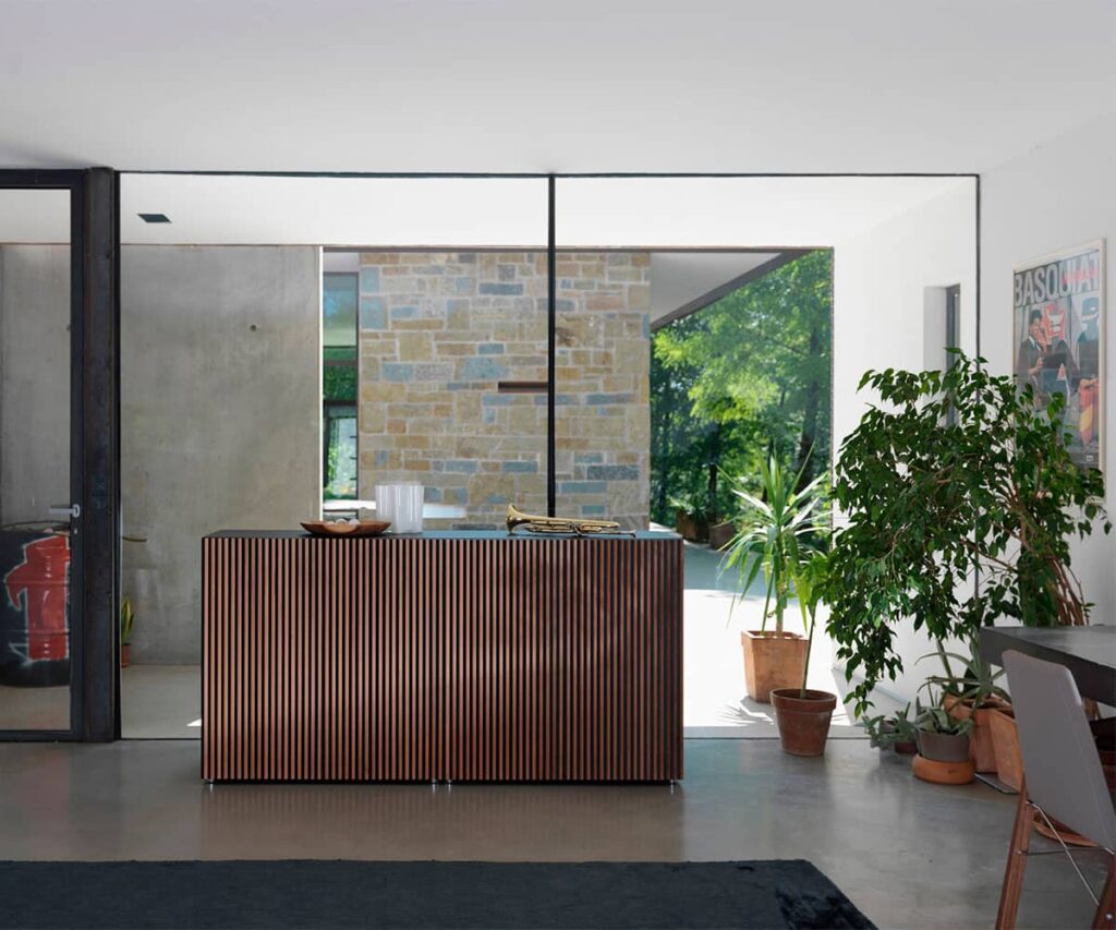 Pieza diseñada por Sth para la marca Horm. Su diseño es un juego óptico que sobresale visualmente con puertas que parecen enmarcadas por franjas de múltiples colores, que al observarlo de diversos angulos se puede ver un juego de colores.