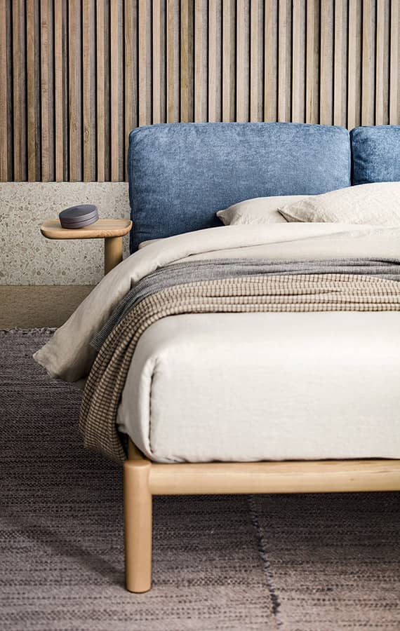Spillo se encuentra disponible en tela, cuero o madera, podrás seleccionar los acabados a tu gusto para tener la recámara ideal.