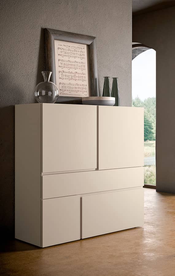 Esta pieza se encuentra disponible en colores lacados mate o brillantes y acabados en madera. Sin duda es un complemento que aporta elegancia.