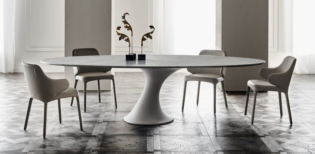 Algunos de los materiales que se recomiendan para las mesas, especialmente los comedores, es el mármol y la madera. Estos con diseños estilizados para que el estilo contemporáneo sea realmente detonante en el interior.