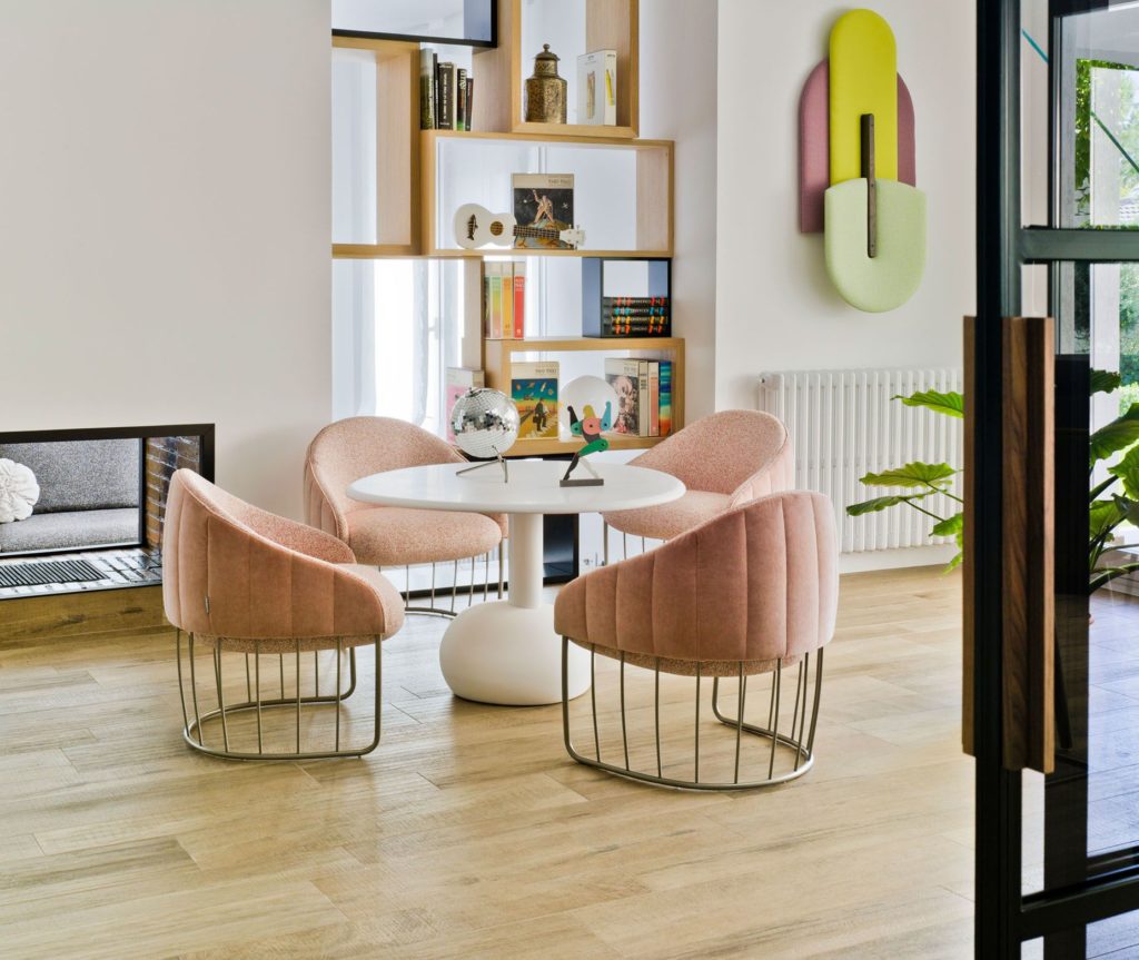 Para complementar el comedor, elige unas sillas que contrasten con el material que elegiste en la mesa. Puedes colocar acabados en terciopelo o tela con un estilo nórdico o minimalista, así le darán un toque estilizado a tu comedor.