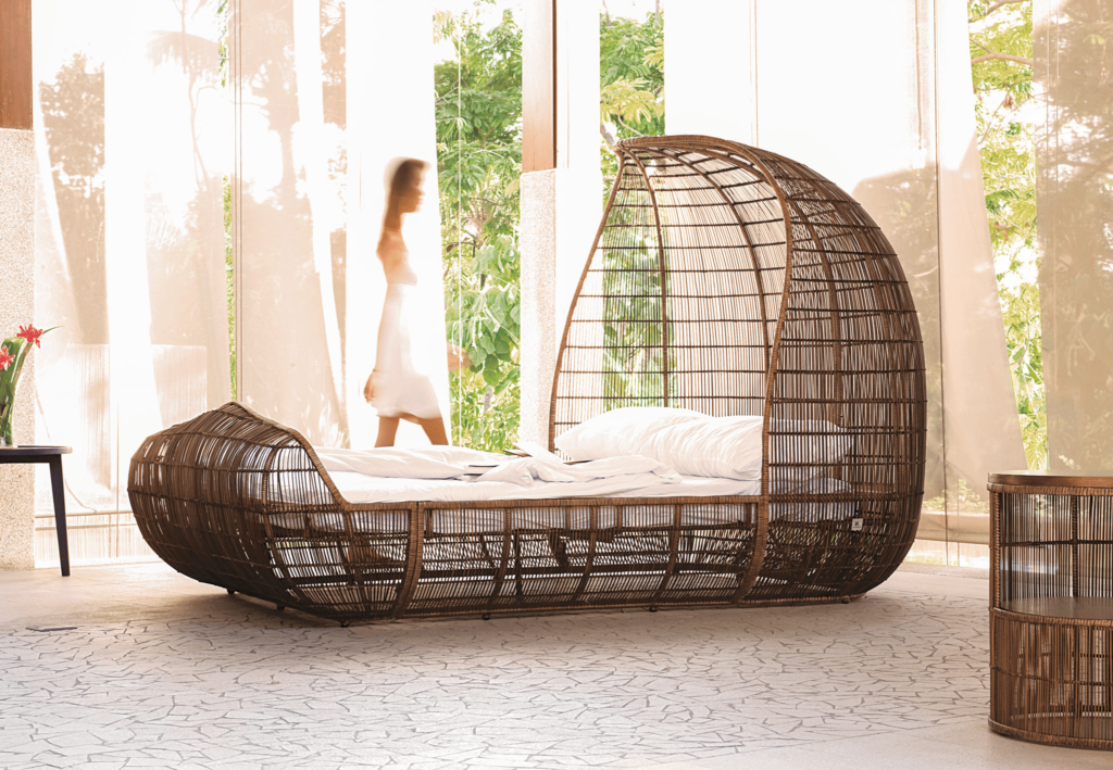 Cuando se trata de dormir, es ideal contar con materiales que transmitan paz y tranquilidad. Por esto la cama Voyage es una pieza clave en tu recámara. Se encuentra elaborada en abaca, acero y nailon.