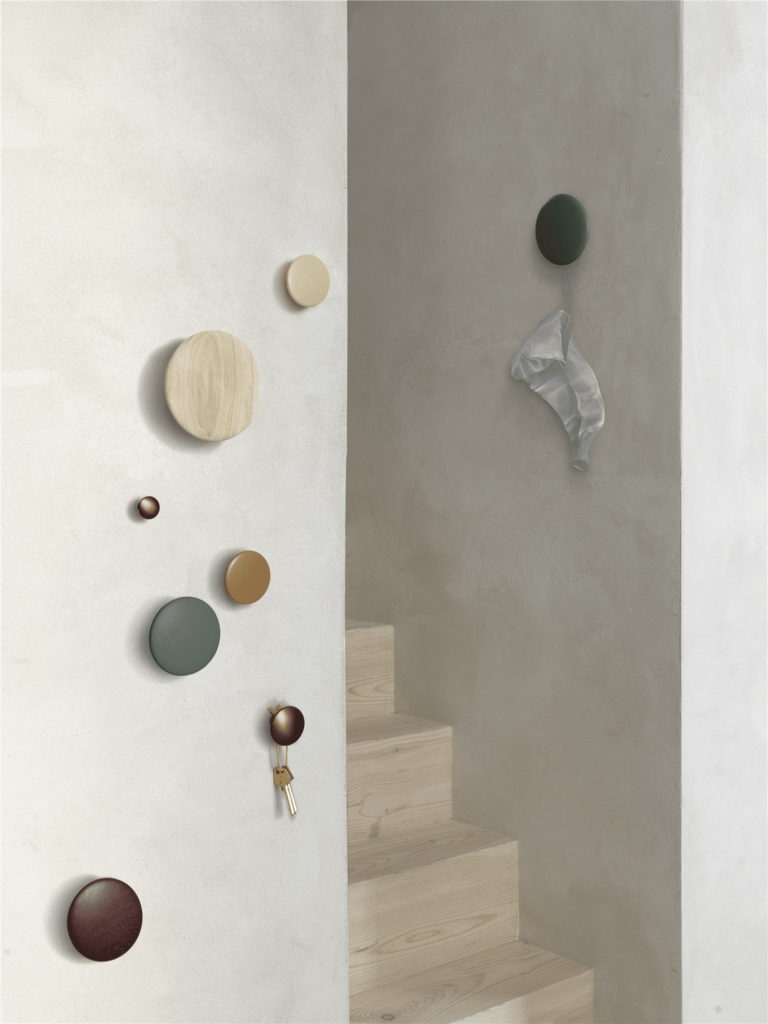 Los percheros de la marca Muuto diseñados por Lars Tornøe, son piezas clave en diversas áreas de tu hogar como cocinas, recámaras, sala principal, etc. En ellos podrás colocar diversos objetos como llaves, chamarras, bolsas y mucho más. Además, su diversidad de tamaños y colores crean un ambiente liviano y especial en tu pared.