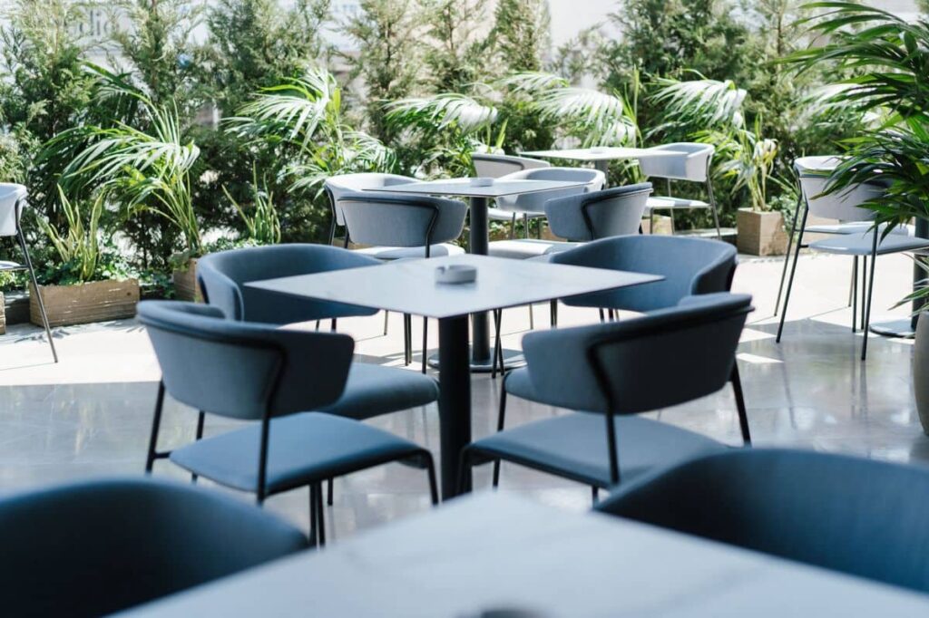 La estructura de las mesitas es elaborada de madera de fresno y se adaptan a mármol o madera, además los asientos son tapizados con tejidos los cuales harán lucir los espacios ya que sus colores brillantes nos transportan a sol y la playa.
