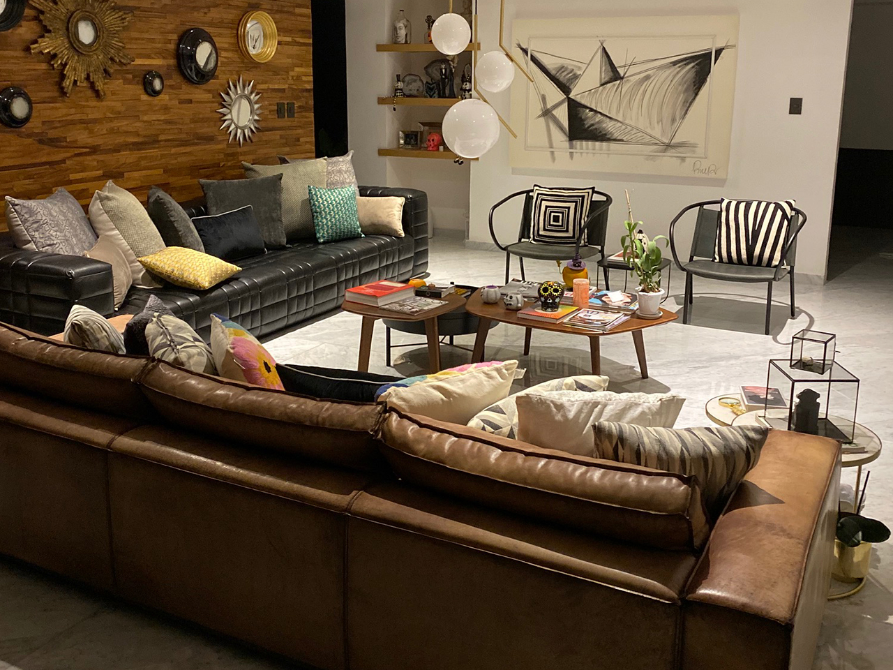 En este proyecto trabajamos de la mano con los dueños, los cuales buscaban complementar su idea de interiorismo, siendo ellos los autores del concepto. Nosotros les brindamos propuestas diferentes para complementar el mobiliario que ya tenían en mente. Propusimos y acordamos un mobiliario variado, acogedor y afín al estilo general del proyecto tomando en cuenta materiales naturales, diseños limpios y colores neutros (blanco, café, negro) con toques de metal dorado. Nuestro mobiliario se colocó en diferentes áreas de la casa (terraza, sala, comedor, cocina, recámara, escalera, barra y pasillos) proyectando así el espacio ideal que los dueños buscaban.