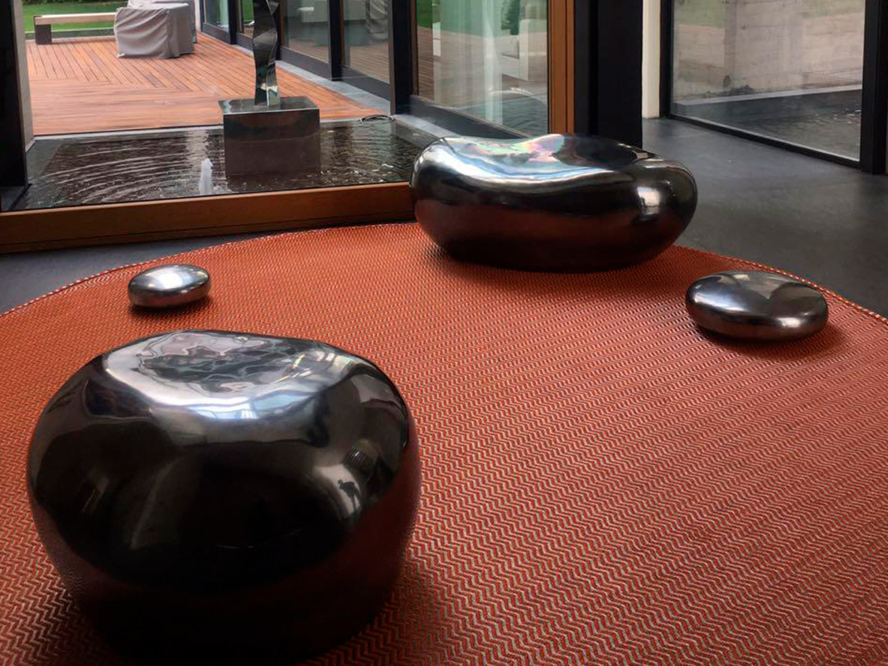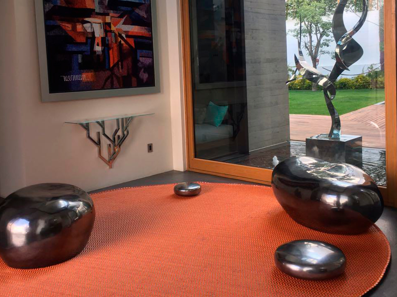 Trabajamos con los dueños y el despacho CB27, este último seleccionado por los dueños para la construcción de la casa. La intención fue proponer mobiliario de prestigio italiano para ciertas áreas de la casa contemporánea y recién construida, permitiendo resaltar los espacios seleccionados con piezas distinguidas. Hemos entregado una magnífica mesa-comedor compuesta de 3 partes que permite recibir hasta 24 personas, siendo un producto elaborado a la medida especialmente por la marca Riva 1920. Se entregaron piezas que también pudieran asemejarse a obras de arte, como la credenza Venice; el tapete redondo de Verdi, reconocida marca colombiana; o los banquitos en forma de gota (Mercurio) de Imperfetto Lab.