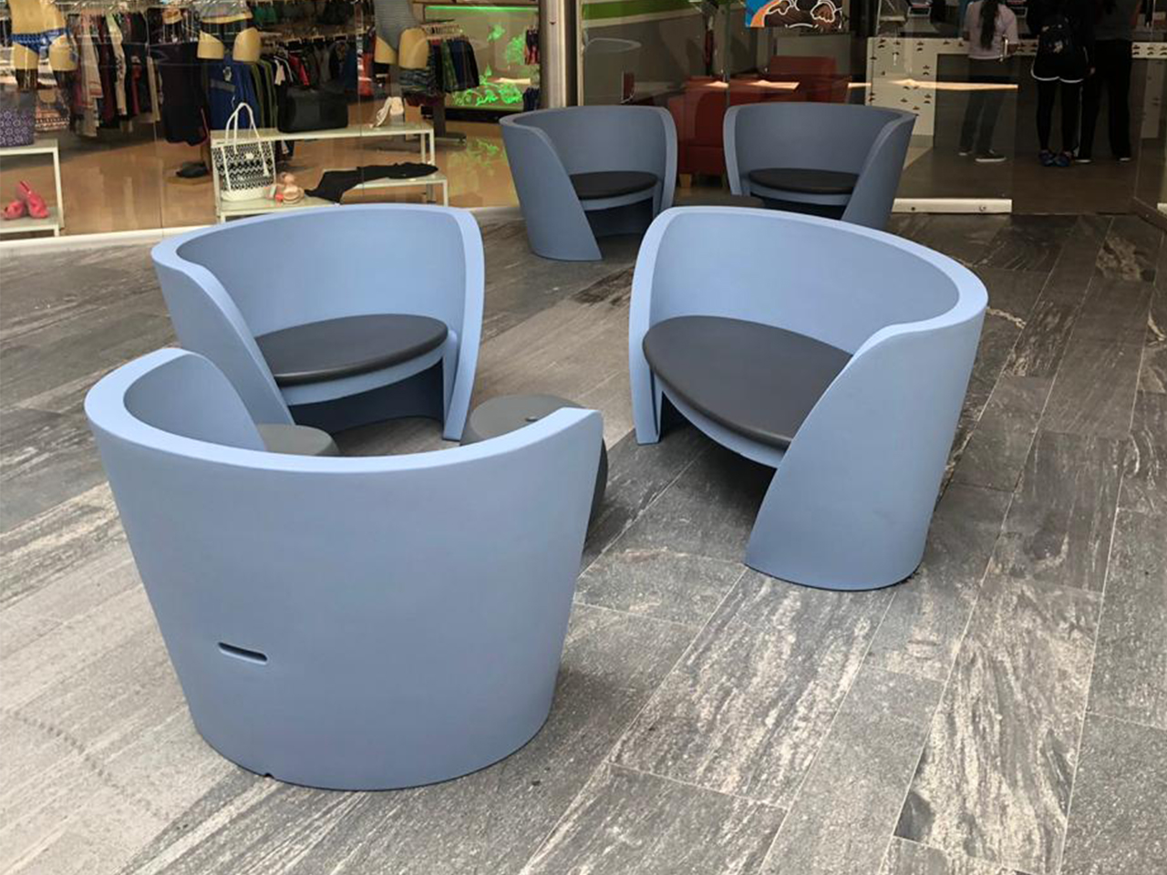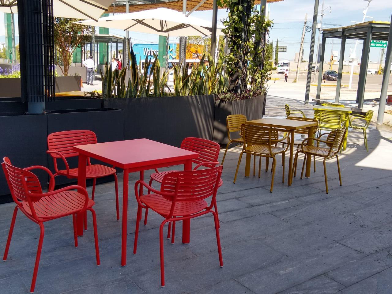 En colaboración con el despacho de arquitectura Tada Arquitectos, hemos participado en la renovación de la plaza comercial El Triángulo en Puebla. Nuestro reto fue encontrar mobiliario con mucho diseño contemporáneo para cubrir las áreas interiores de estancia y los nuevos espacios que fueron, las zonas de FoodCourt y las terrazas exteriores recién conceptualizadas. Hemos acordado y entregado una selección de mobiliario de 3 lindas marcas italianas para exteriores (EMU, ETAL y SLIDE) con características de diseño innovador y duradero para uso rudo en espacios públicos. El resultado fue contribuir a la nueva imagen atractiva de la Plaza con mobiliario que la hace distinguir, claramente, de las demás plazas competidoras de la ciudad.