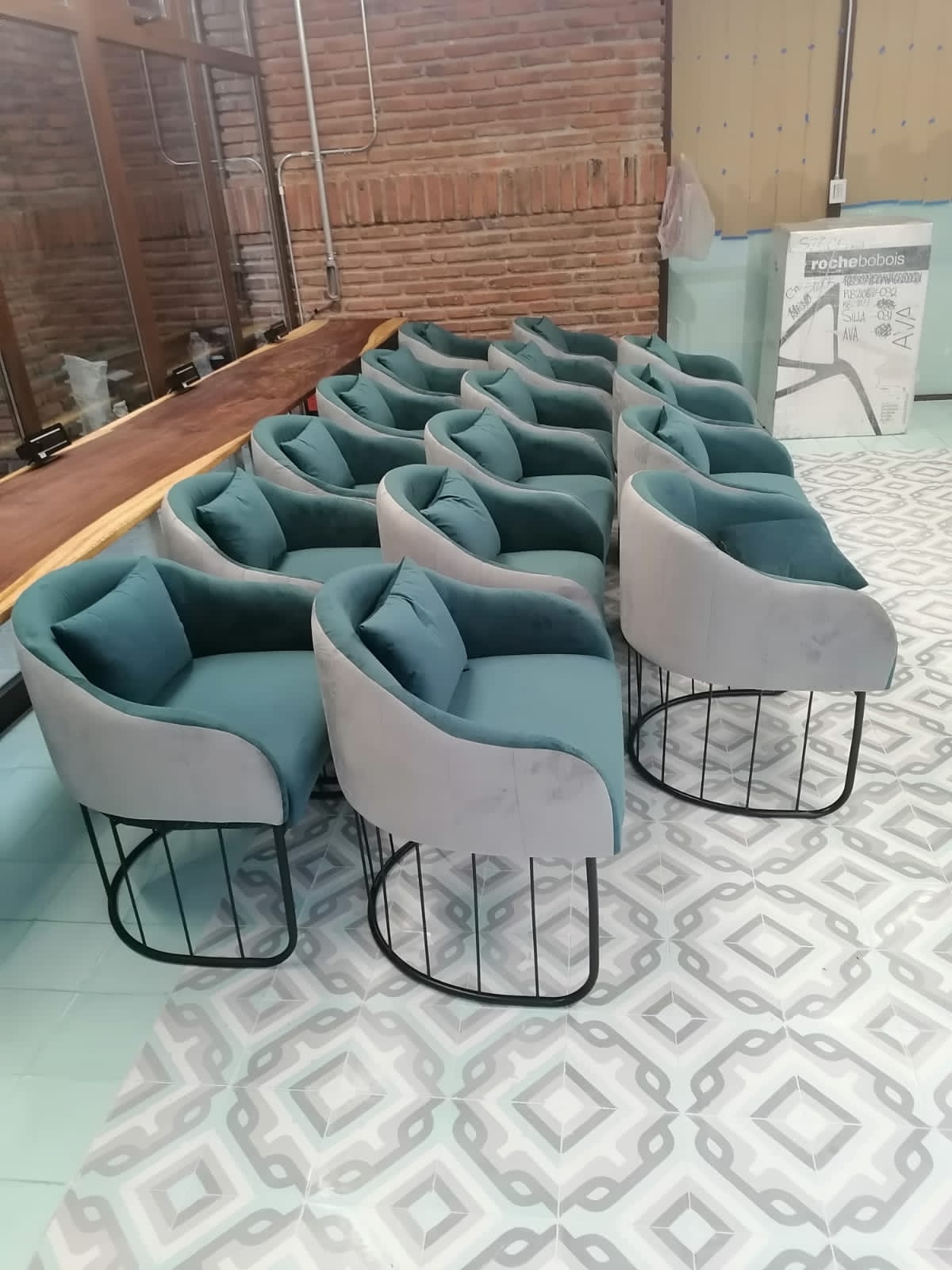 Para este proyecto se hizo una selección de mobiliario de sillas y mesas. Este espacio de trabajo se pensó para hacer un ambiente más dinámico para los empleados, siendo cómodo y funcional. Las mesas se componen de la cubierta Sevelit en acabado blanco y una base de tres puntas. Este tipo de combinación de cubiertas con bases hacen que las mesas un estilo propio adaptándose a cualquier proyecto de tipo contract siendo muy duraderas. Las sillas fueron fabricadas específicamente para este proyecto con un taller especializado, llevando el trabajo desde la estructura hasta el tapizado en el color deseado por el cliente.